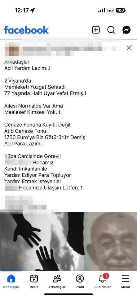 Sosyal medya platformlarında “acil yardım” başlığıyla, Viyana’daki bir bakım evinde hayatını kaybeden Halit Uyar isimli yurttaşın cenaze masrafları için yardım çağrıları yapıldı.