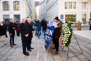 Cuma günü Viyana Judenplatz’ta [Yahudi Meydanı] düzenlenen törende, Avusturya Ulusal Meclisi Başkanı Walter Rosenkranz’ın anıta çelenk koyulması engellendi.