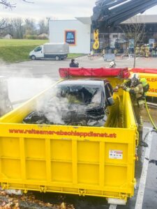 “Hofer” otoparkındaki elektrikli otomobil yangını iki açıdan bir ilkti: Oberndorf İtfaiyesi ilk kez yanan bir aküyle ilgili bir müdahalede bulundu ve St. Georgen’deki bir çekici şirketine ait özel karantina konteyneri ile özel kamyon ilk kez kullanıldı. Çekici firması sahibi Bernhard Reitsamer, “40.000 Euro’luk konteyneri ve ona uygun 100.000 Euro’luk kamyonu birkaç hafta önce teslim almıştık; Oberndorf’daki olay ilk görevimiz oldu” dedi. Kazalarda artık araçların yaklaşık yüzde 20’sinin elektrikli olduğunu belirten Reitsamer, E-araba yangınlarına karşı artık daha iyi donanımlı olduklarını söyledi.