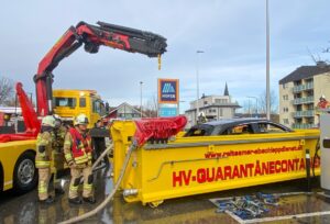 Özel konteyner, Pazar sabahı Oberndorf İtfaiyesi tarafından talep edildi. İtfaiye Komutanı Alexander Traintinger, “Aracı söndürdükten sonra bile tehlikeli olabileceği hemen anlaşıldı” dedi. Gerçekten de üst sınıfa ait üç yıllık araç birkaç kez yeniden duman çıkarıp tutuştu. “Aracı tamamen söndürmemiz bir buçuk saat sürdü; normalde bir araç yangını en geç 30 dakika içinde biter” diye ekledi.