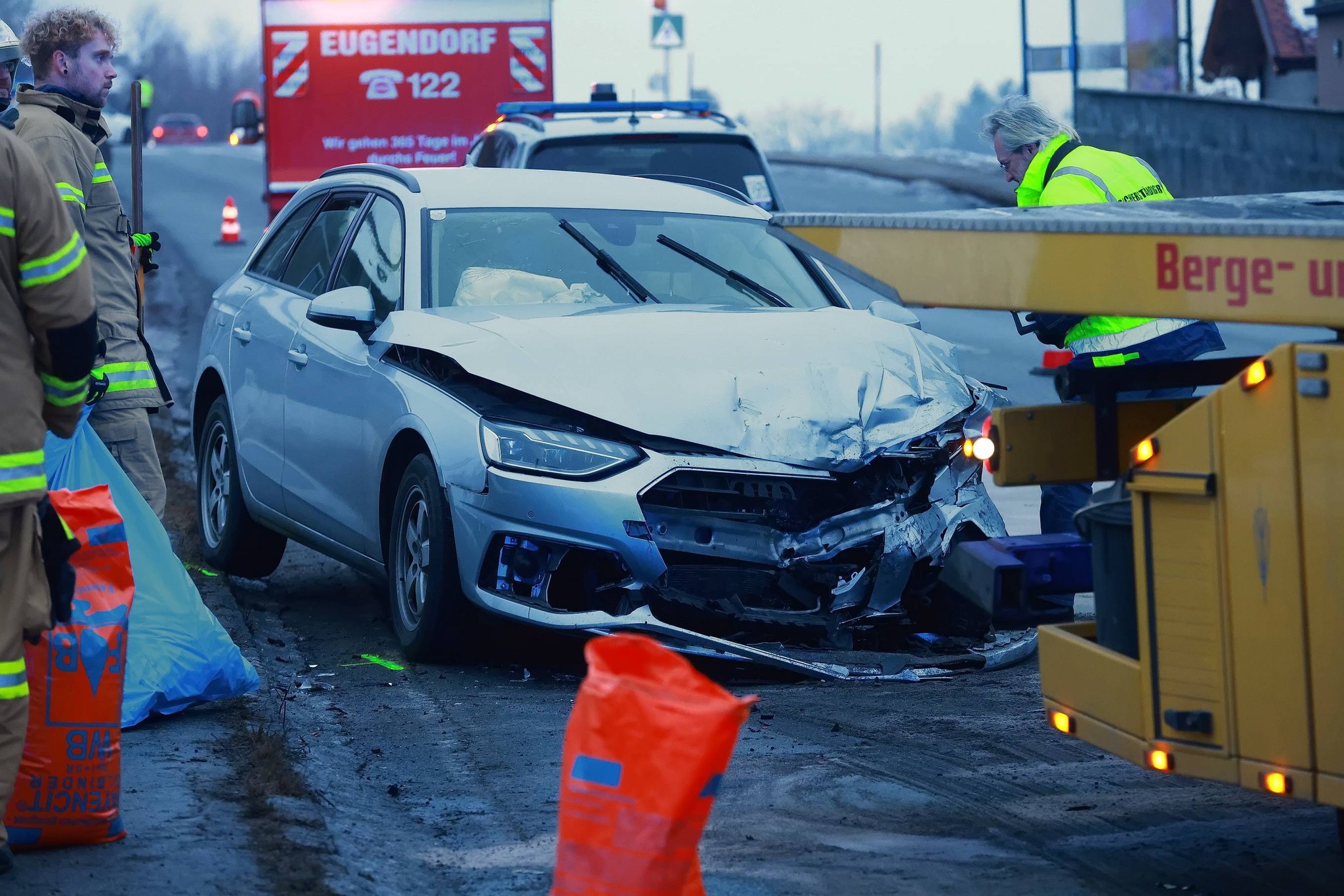 Olay yerine 28 personel ve dört araçla Eugendorf İtfaiyesi ile çok sayıda araçla Kızılhaç sevk edildi. Polis, Wiener Bundesstraße’yi trafiğe kapattı ve araçlar alternatif güzergâhlara yönlendirildi.| ©DerVirgül