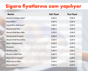 Chesterfield, L&M, Marlboro ve Philip Morris sigara markaları zamdan etkileniyor. Ayrıca Heets tütün çubuklarının fiyatı da 5,50 Euro’dan 5,70 Euro’ya çıkarılacak.