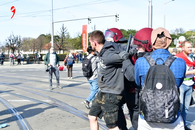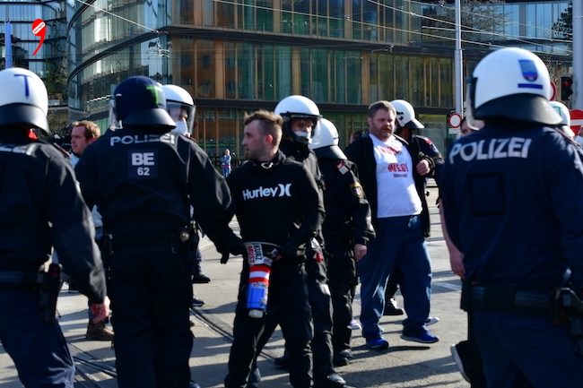 Göstericilerin polis ile girdiği en büyük çatışma, Anti-Faşist grupların Landstraßer Gürtel yakınlarından geçtiği an ve bu gruptan birilerinin yürüyüşe gelerek sözlü saldırı düzenlediği anda yaşandı.