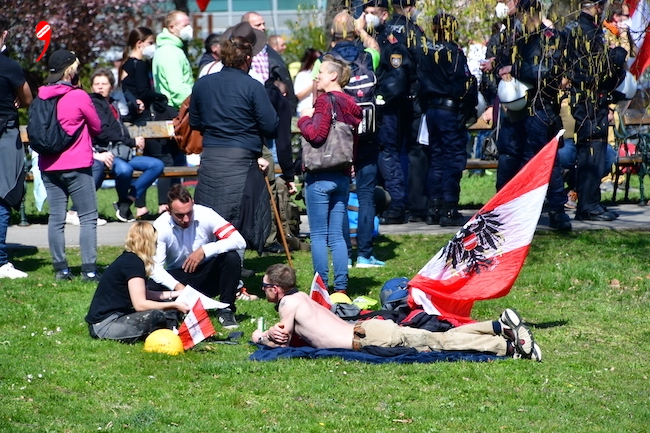 Viyana’da yaklaşık 3000 bin kişi Cumartesi öğleden sonra organizatörlerin “tüm gösterilerin anası” olarak ilan ettiği hükümetin korona önlemlerine karşı bir miting ve yürüyüş için bir araya geldi.