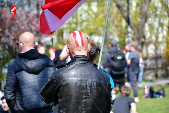 Avusturya’nın diğer eyaletlerinden geldikleri anlaşılan göstericiler, eyalet bayrakları ve Avusturya bayraklarını taşıdı.
