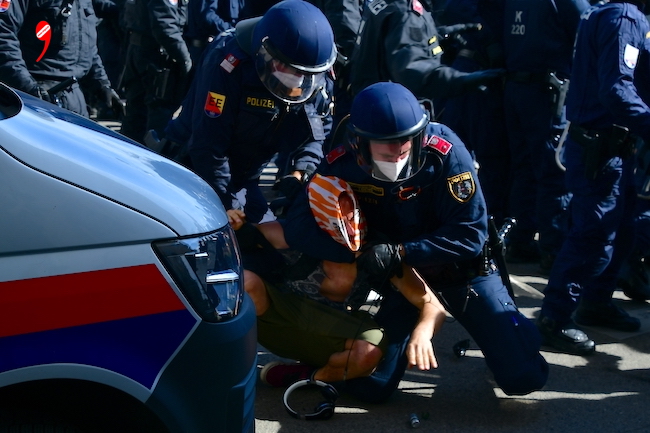 Göstericiler ile polis arasında yaşanan küçük çaplı arbede sonrasında, geri dönen göstericiler, Landstraßer Gürtel’den çıkarak ara sokağa girmek isteyince, polis tekrar barikat kurarak göstericileri engelledi.