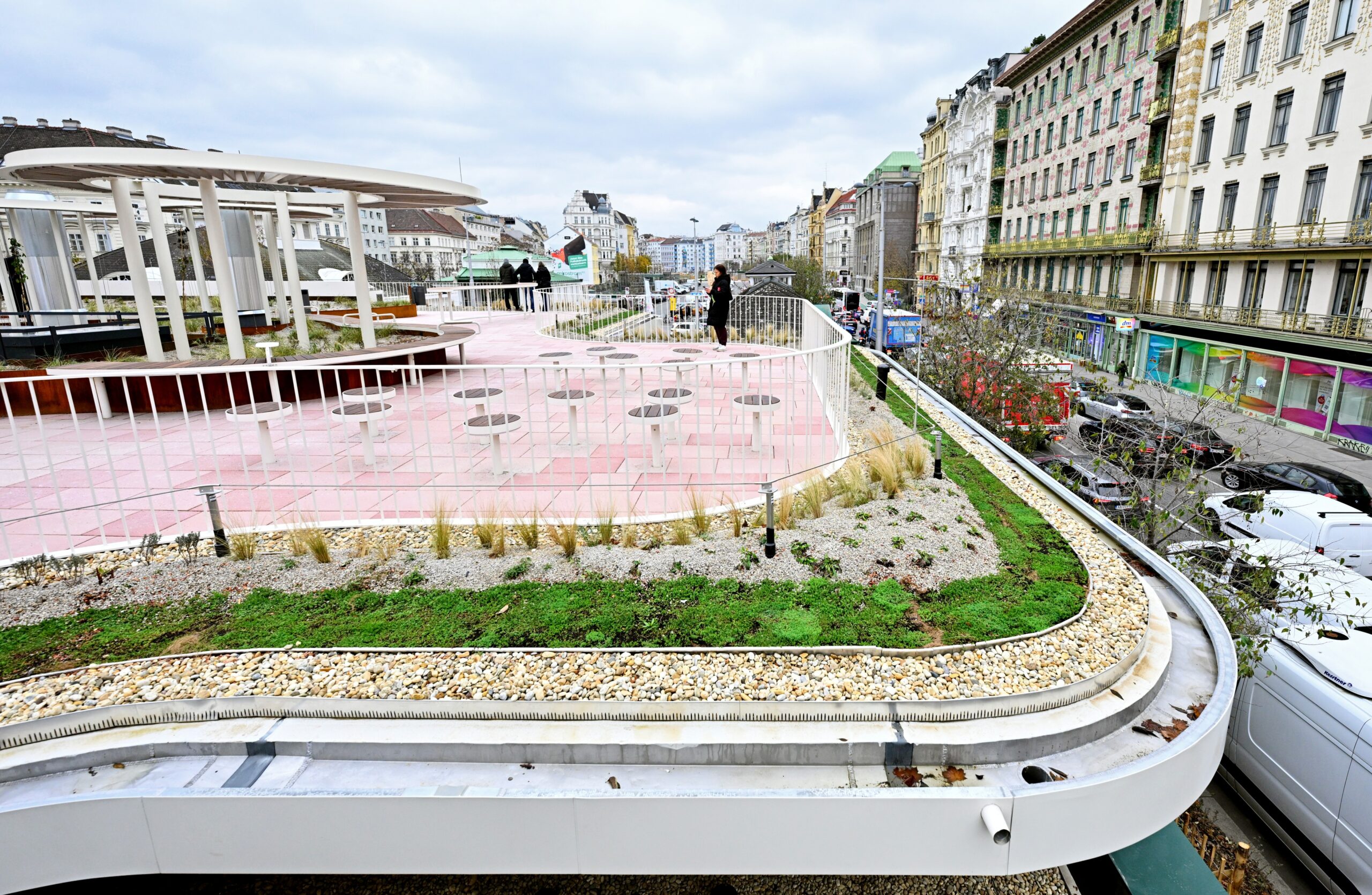 Cuma günü, Viyana Naschmarkt’ın batı ucundaki yeni pazar alanı, resmi adıyla “Marktraum”, açıldı. Yapı 13 tezgâha ya da uzmanlaşmış dükkâna sahip ve ağırlıklı olarak bölgesel ürünler sunuyor; ayrıca bir de çatı terası bulunuyor. Yeni pazar halinin inşası yaklaşık bir yıl sürdü, ağırlıklı olarak ahşap ve cam kullanıldı. Yeni Naschmarkt giriş bölümü, mevcut tezgâhlardan belirgin şekilde daha büyük, ancak stil olarak onlara uyum sağlıyor. Toplamda yaklaşık 850 metrekarelik bir alanı kaplıyor.