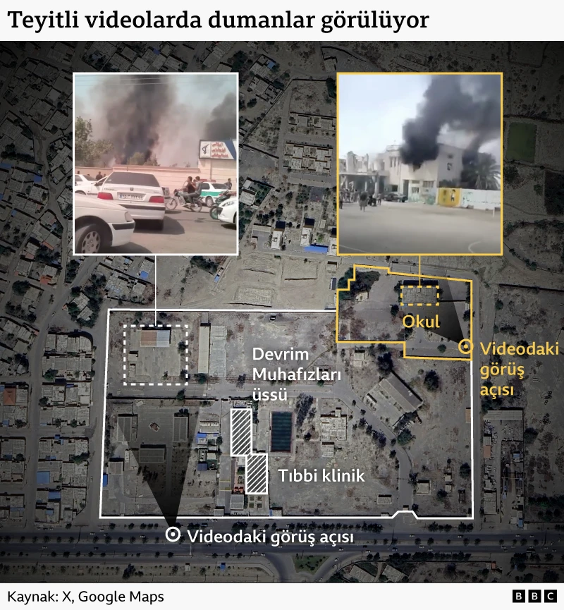 Doğrulanan videolardaki dumanların konumu, uydu görüntülerinde hasarın görüldüğü yerlerle örtüşüyor.