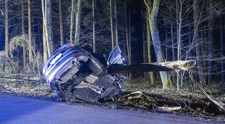 Yukarı Avusturya’da [OÖ] bir otomobil sürücüsü, aracının devrilen bir ağaç tarafından delindiği korkunç bir trafik kazasından sağ kurtuldu.