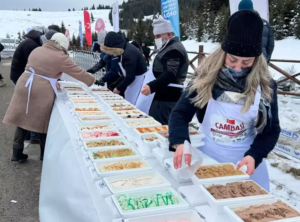 Ordu’nun Kabadüz ilçesi Çambaşı Yaylası’nda, ‘Dünyanın en fazla çeşidi olan dondurması’ rekor denemesi gerçekleştirildi. Guinness Rekorlar Kitabı’na girebilmek için Celal Karaarslan ve ekibi, 18 gün boyunca hazırladıkları dondurmaları kar üzerine kurulu 125 metrelik masada sergiledi.