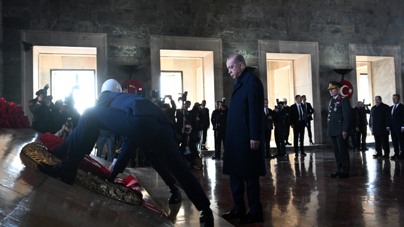 Devlet erkânı Anıtkabir’de resmi törene katıldı. Tören saat 08.45’te başladı. Saatler Atatürk’ün son nefesini verdiği 09.05’i gösterdiğinde tüm sesler durdu, Anıtkabir dahil Türkiye’de milyonlar saygı duruşunda bulundu. Yürüyüşün ardından Erdoğan, kırmızı ve beyaz karanfillerden oluşan ay yıldızlı çelengi, mozoleye bıraktı.