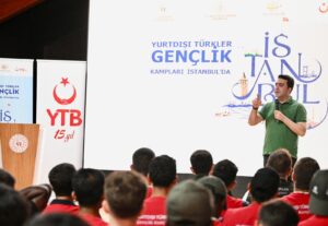 Kampa katılarak gençlerle bir araya gelen YTB Başkanı Abdulhadi Turus, gençlere hitaben yaptığı konuşmada önemli mesajlar verdi. Turus, kampın sadece bir etkinlik değil, medeniyetin izlerini taşıyan bir buluşma noktası olduğunu vurguladı. Dili, dini, rengi farklı olan gençleri ortak bir amaç etrafında buluşturduklarını anlatan Turus, “Burada bir medeniyetin izini, yansımasını görüyoruz. Yurt dışındaki vatandaşlarımızı, soydaş ve akraba topluluklarımızı ve kıymetli uluslararası öğrencilerimizi bir araya getiren bu kamptaki tablo; dünyanın kaoslarla, savaşlarla, ırkçılıkla, farklılıkları kabul etmeyen anlayışlarla dolu bir döneminde verilmiş en net cevaptır. Dili, dini, rengi farklı olan gençlerimizi ortak bir amaç etrafında buluşturuyoruz ve hep birlikte diyoruz ki: ‘Daha adil bir dünya mümkün!’” diye konuştu.