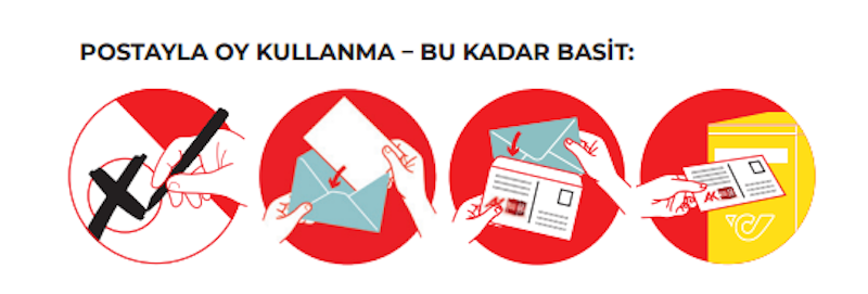 Oy pusulanızı kesin „kullanım kılavuzu“ ile birlikte 29 Mart 2024 tarihinden itibaren posta yoluyla alacaksınız. Lütfen oy pusulasını doldurun ve acilen geri gönderin. Oyunuzu isterseniz resmi oy kullanma yerlerinde de kullanabilirsiniz.